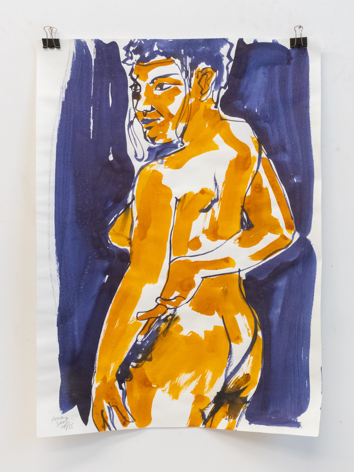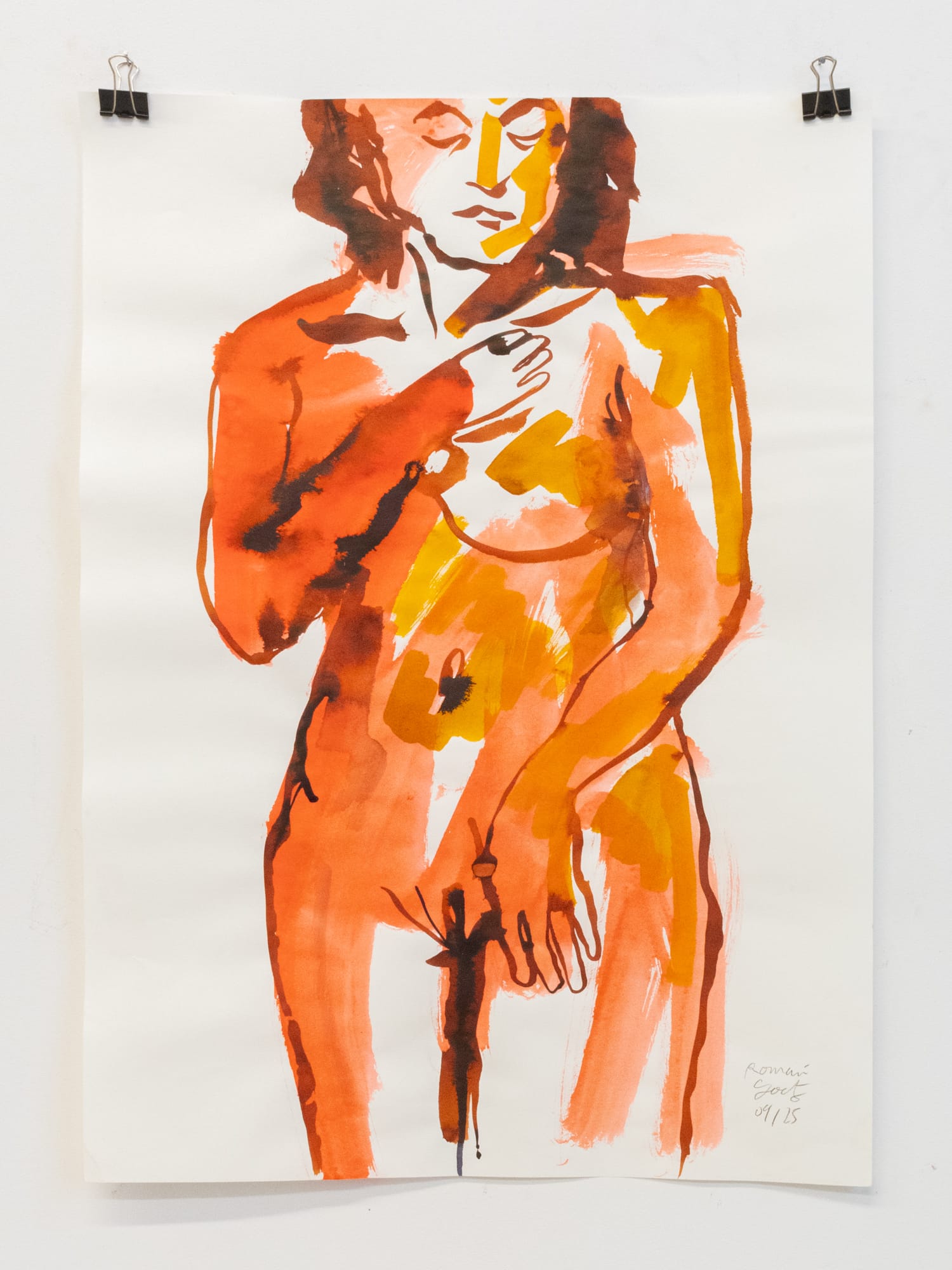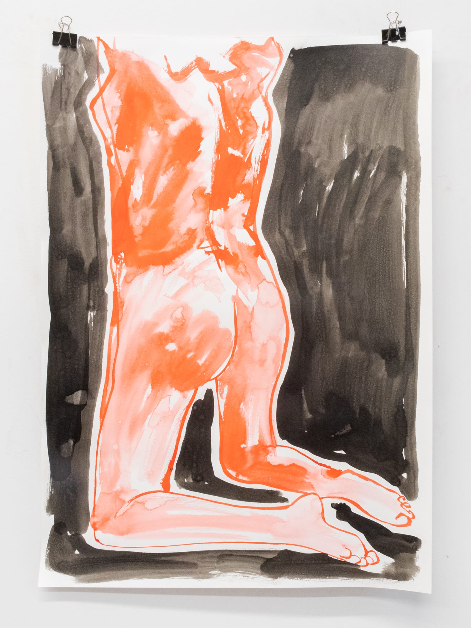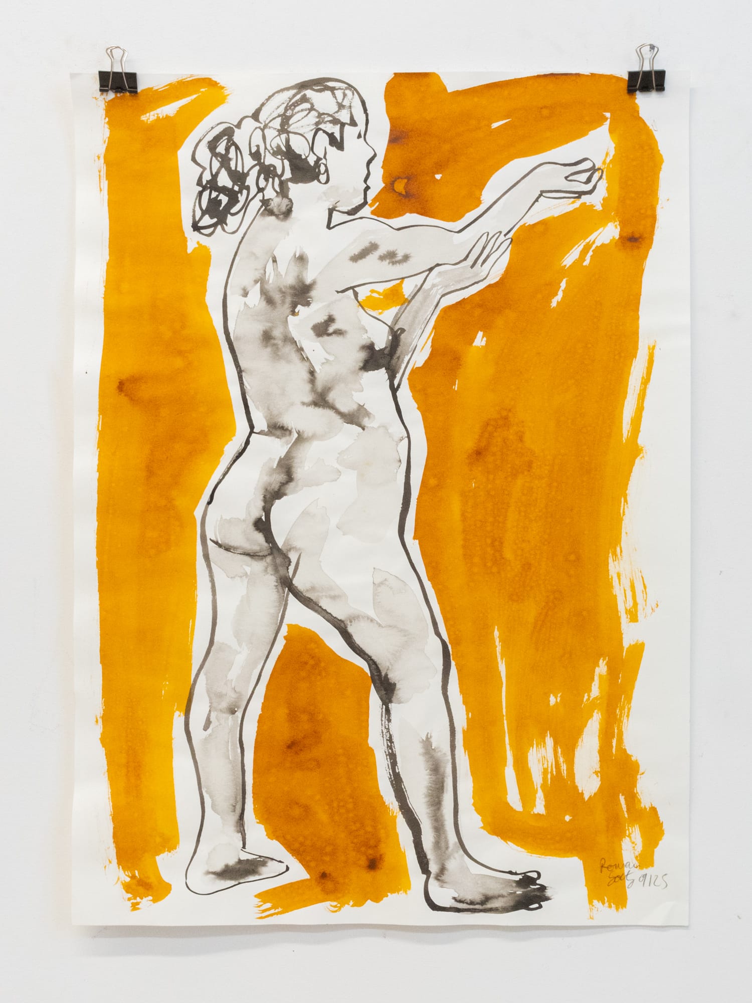 Femme de dos, encres acryliques sur papier, 42 x 57,5 cm, 2025