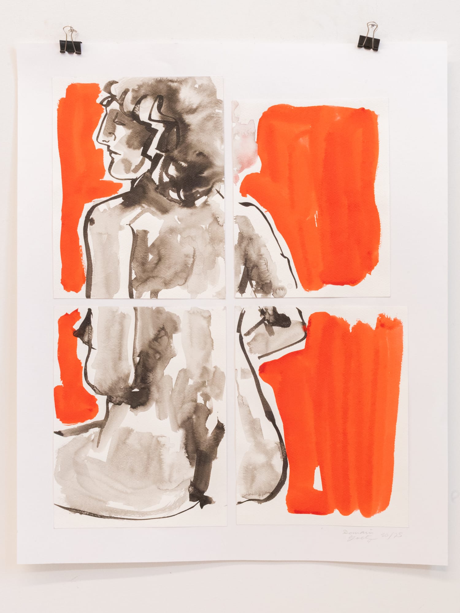 Maroussia V, encre de Chine et encre rouge sur papier, 52 x 63 cm, 2025