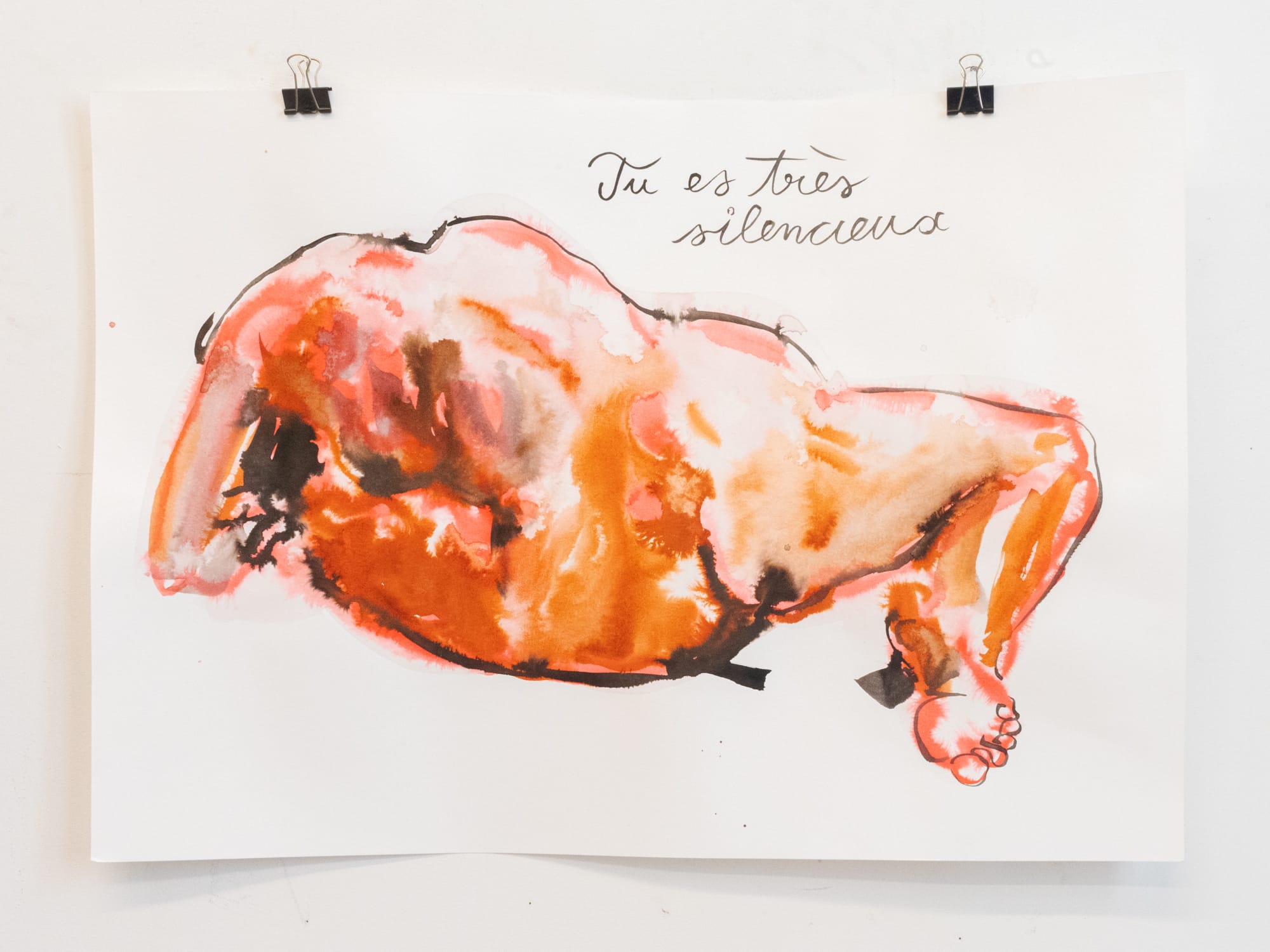 Tu es très silencieux, encres acryliques sur papier, 59 x 42 cm, 2025
