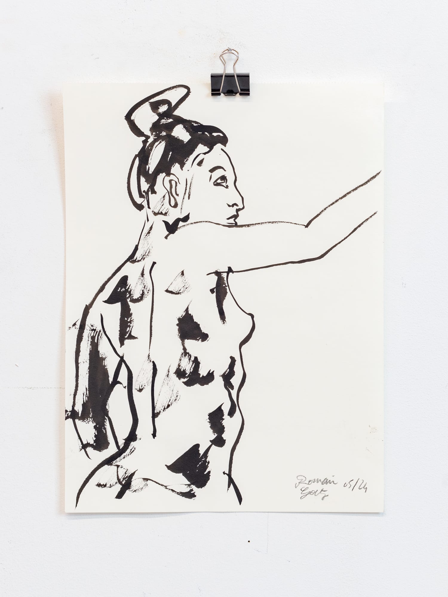 Modèle vivant, encre de Chine sur papier, 21 x 28 cm, 2024