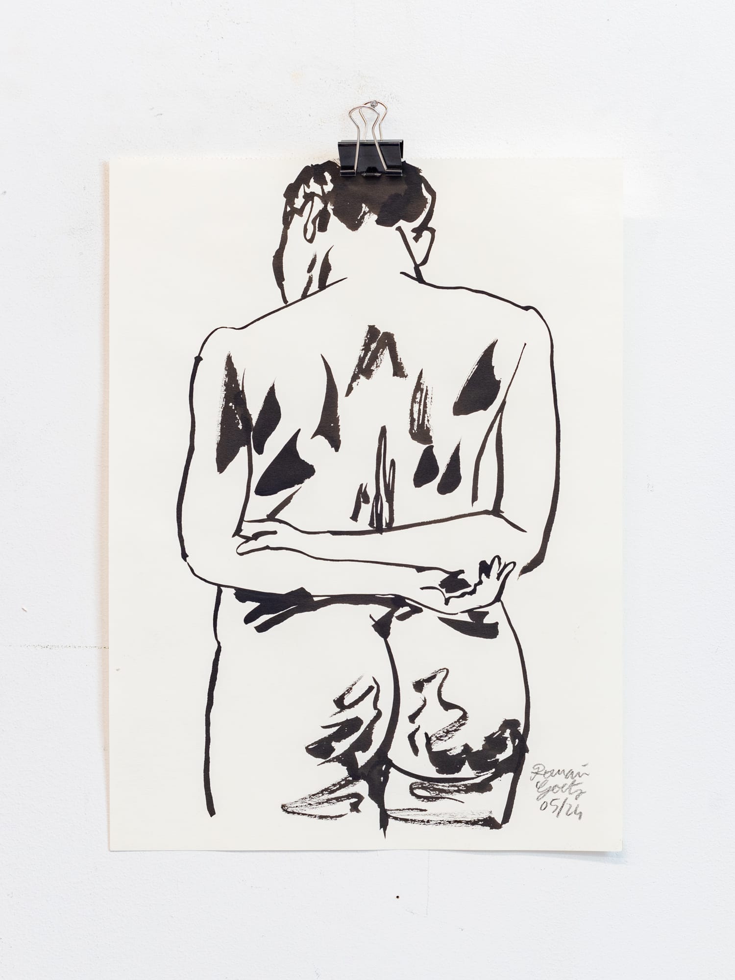 Femme de dos, encre de Chine sur papier, 21 x 28 cm, 2024