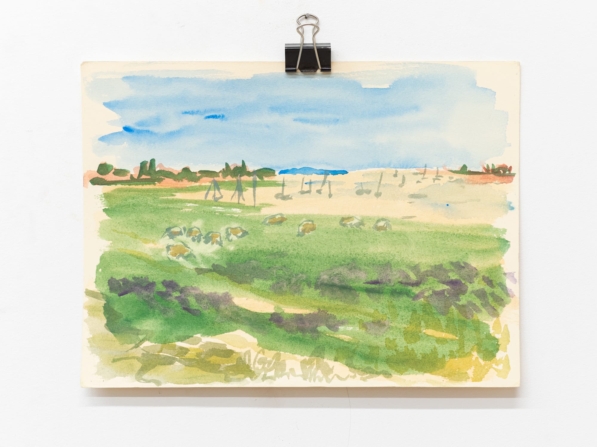 Champ et causse, gouache sur papier, 14,5 x 21 cm, 2025