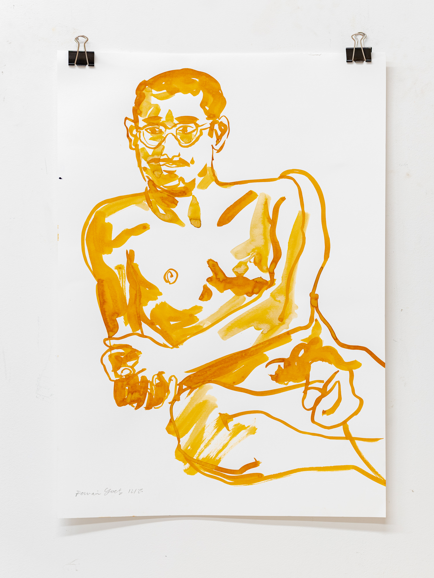 Elias II, encre ocre sur papier, 42 x 59,4 cm, 2025