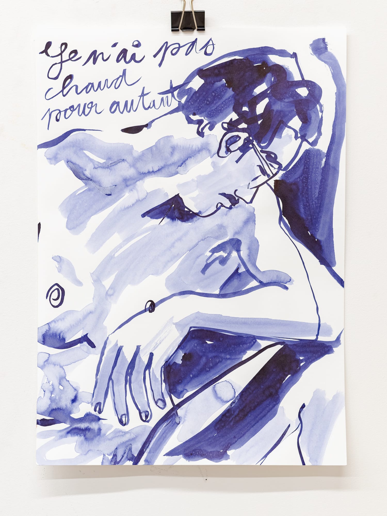 Je n'ai pas chaud pour autant, encre indigo sur papier, 29,7 x 42 cm, 2025