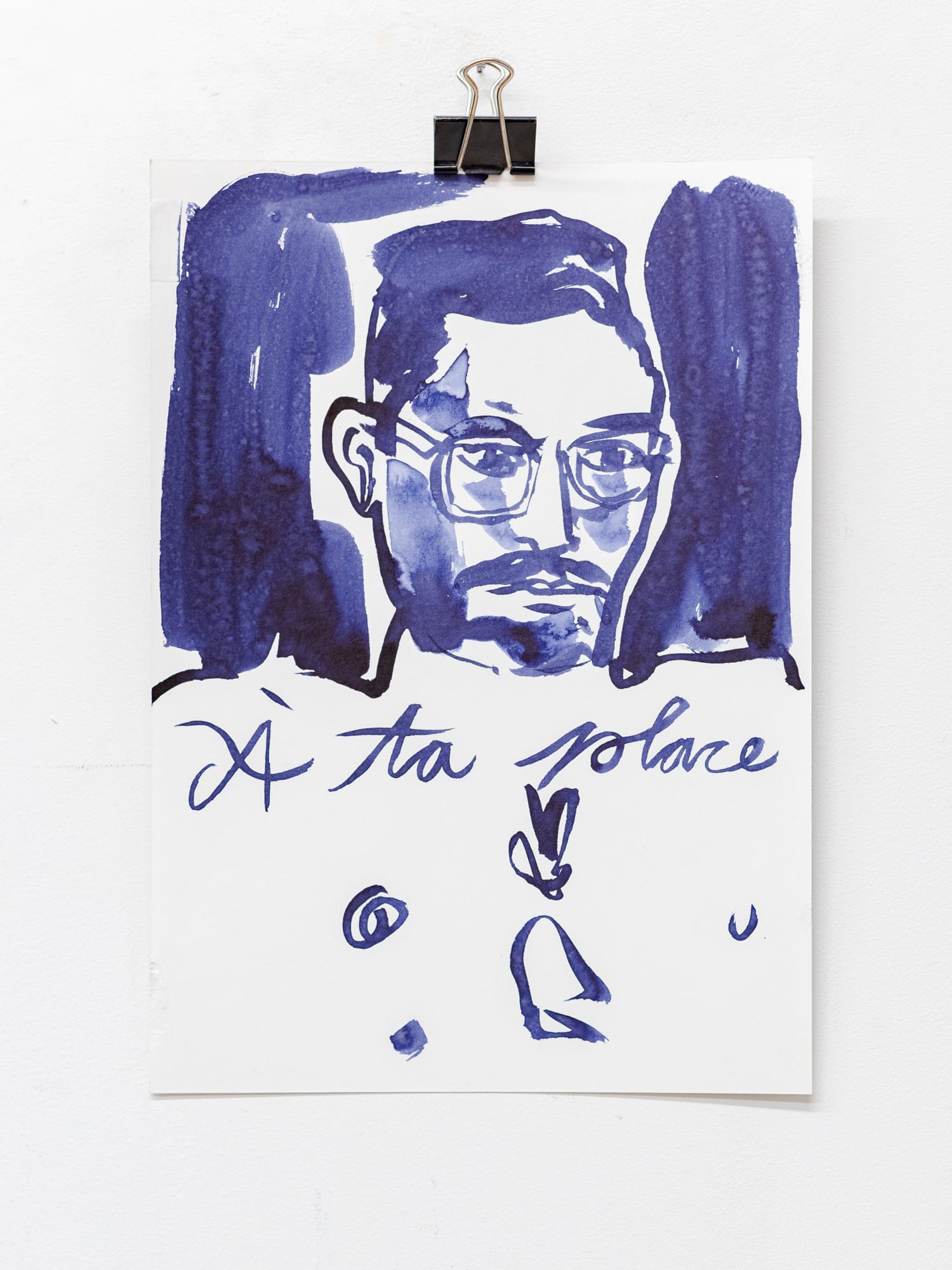 À ta place, encre indigo sur papier, 21 x 29,7 cm, 2025
