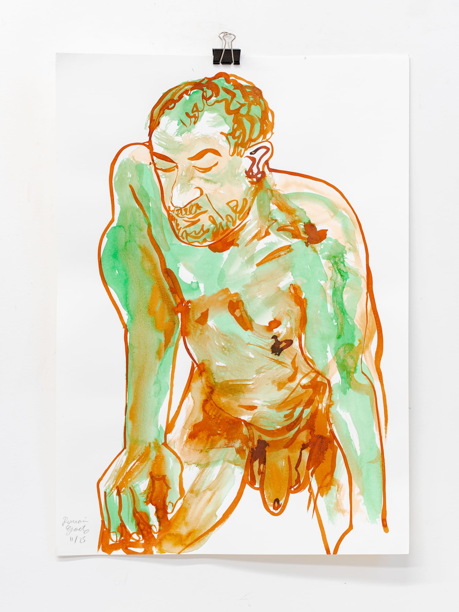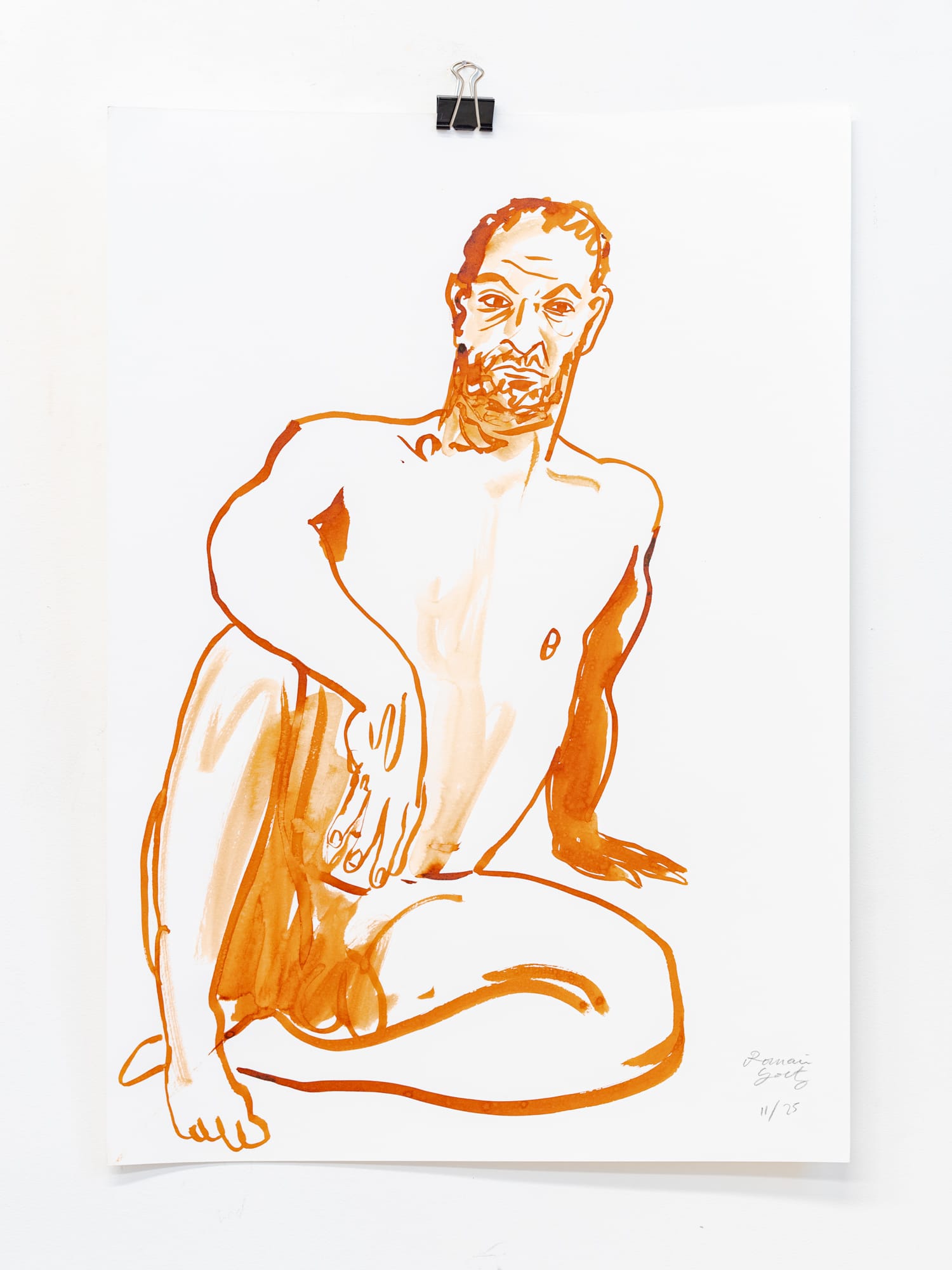 Homme assis I, encre terre de Sienne sur papier, 42 x 59 cm, 2025