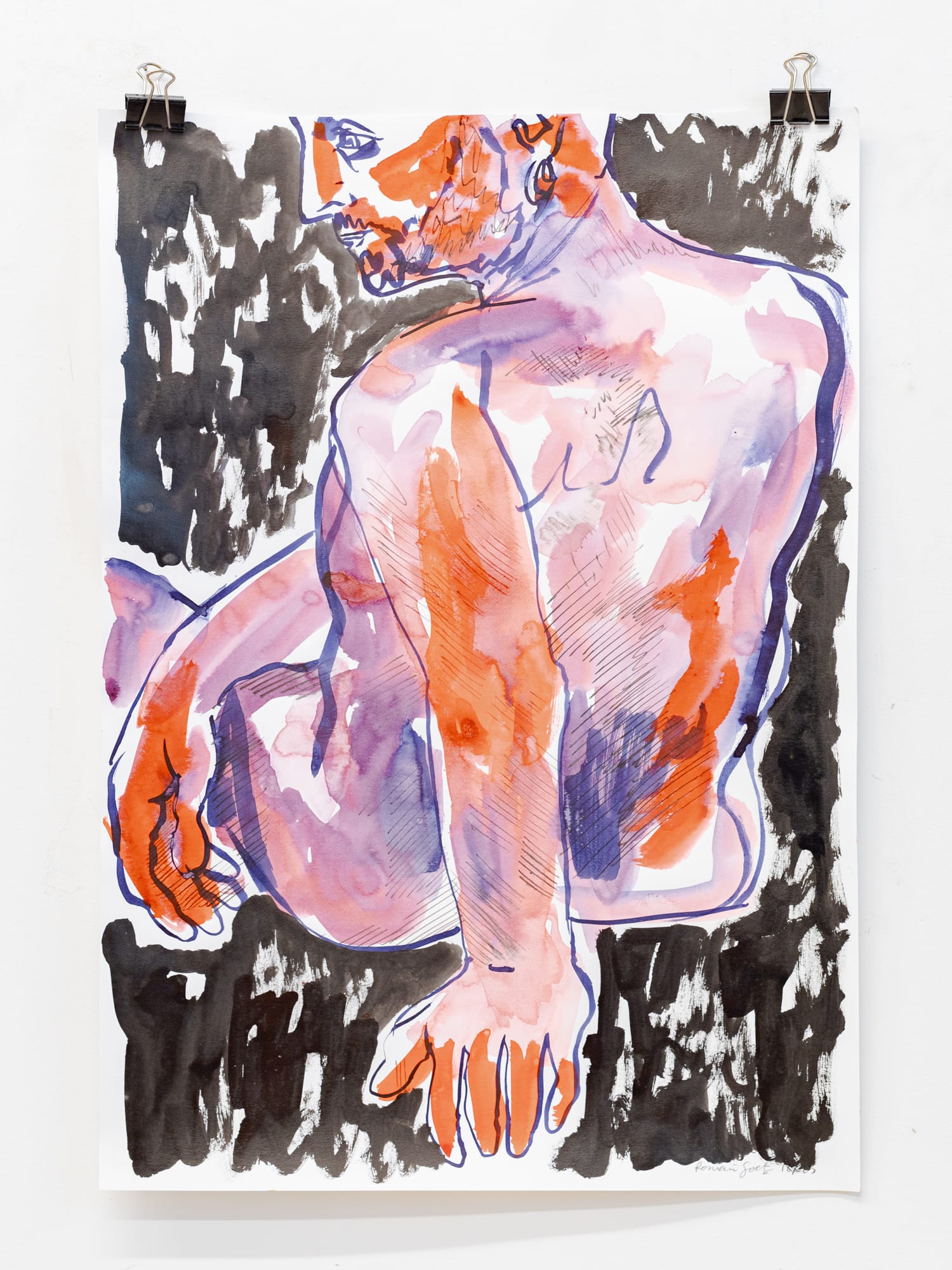 Homme assis III, encres acryliques sur papier, 29,7 x 42 cm, 2025