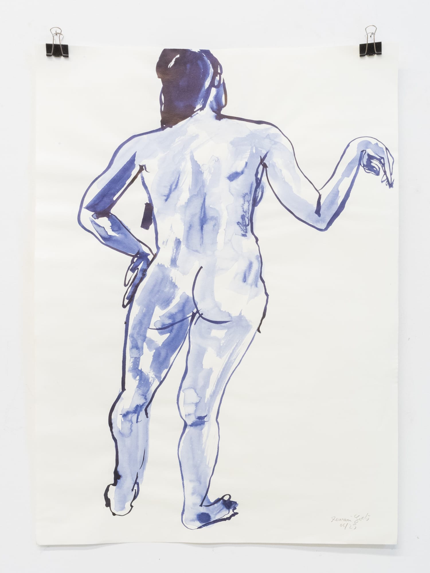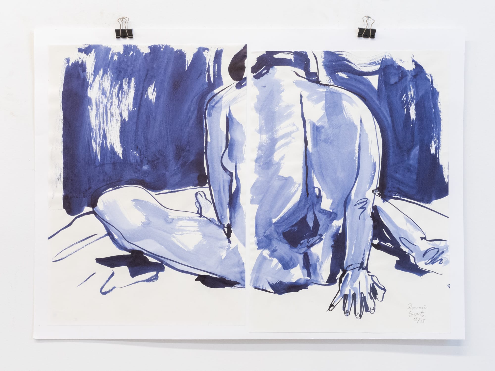 Ruby de dos, encre indigo sur papier, 42 x 57,7 cm, 2025