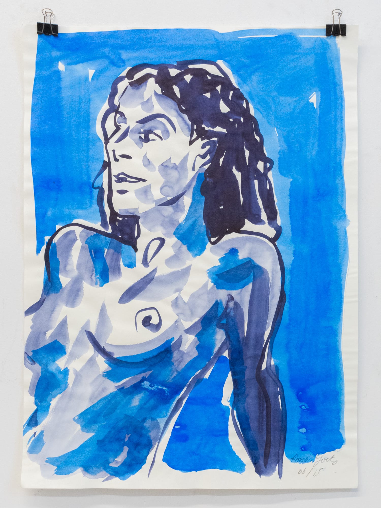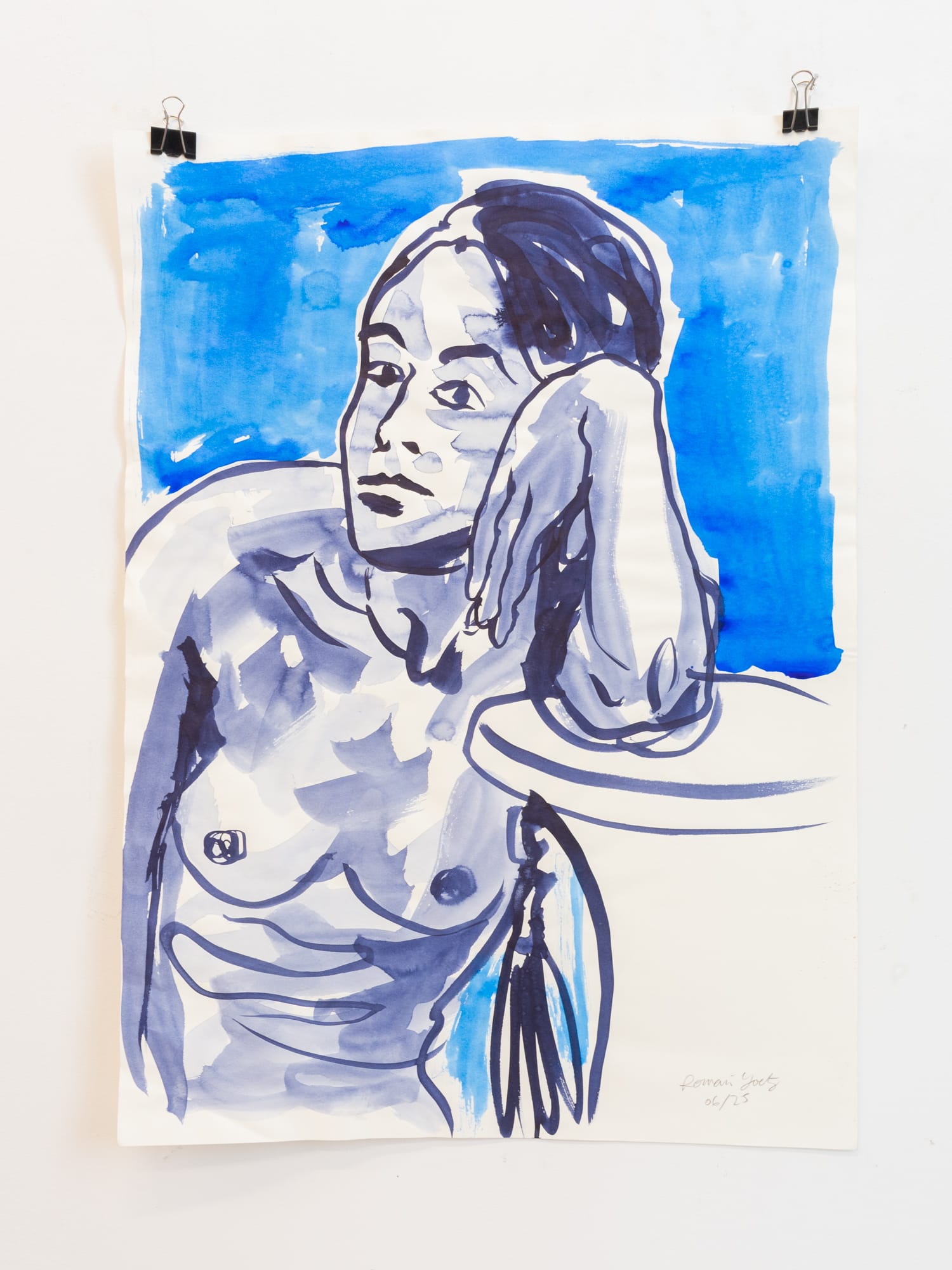 Ruby, encre bleue et indigo sur papier, 41,8 x 57,7 cm, 2025