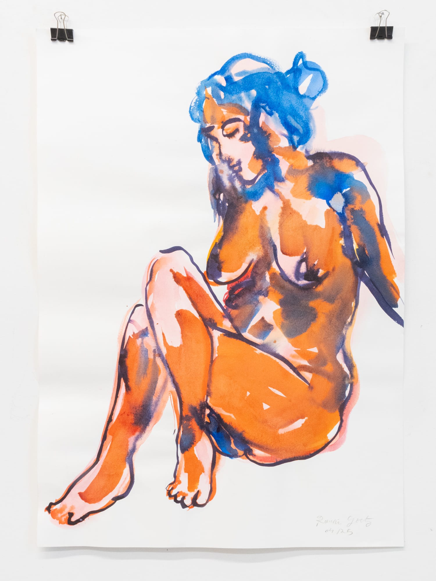 Femme assise, encres acryliques sur papier, 41,6 x 57,5 cm, 2025