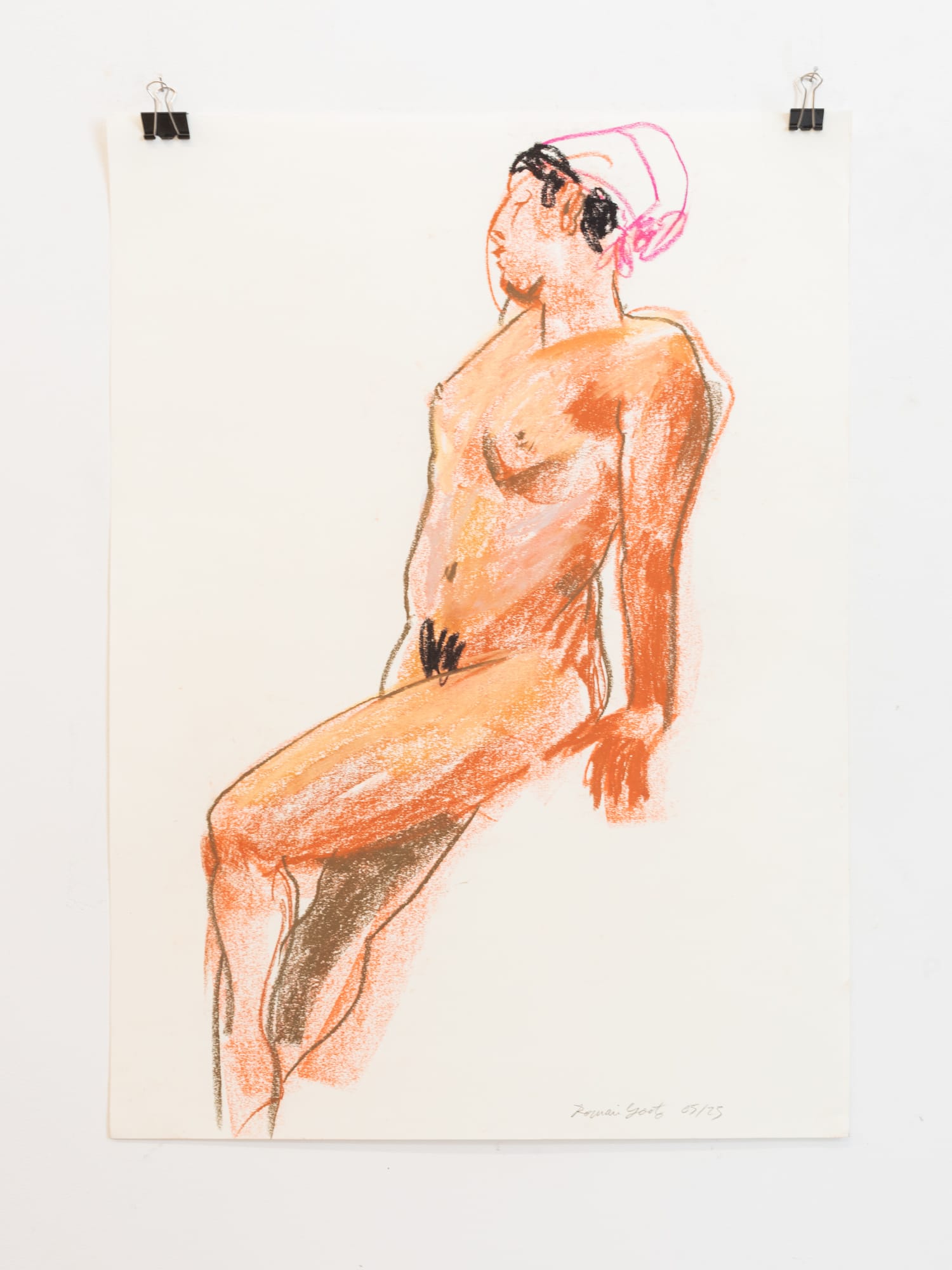 Femme assise, pastels secs sur papier, 42 x 47,7 cm, 2025