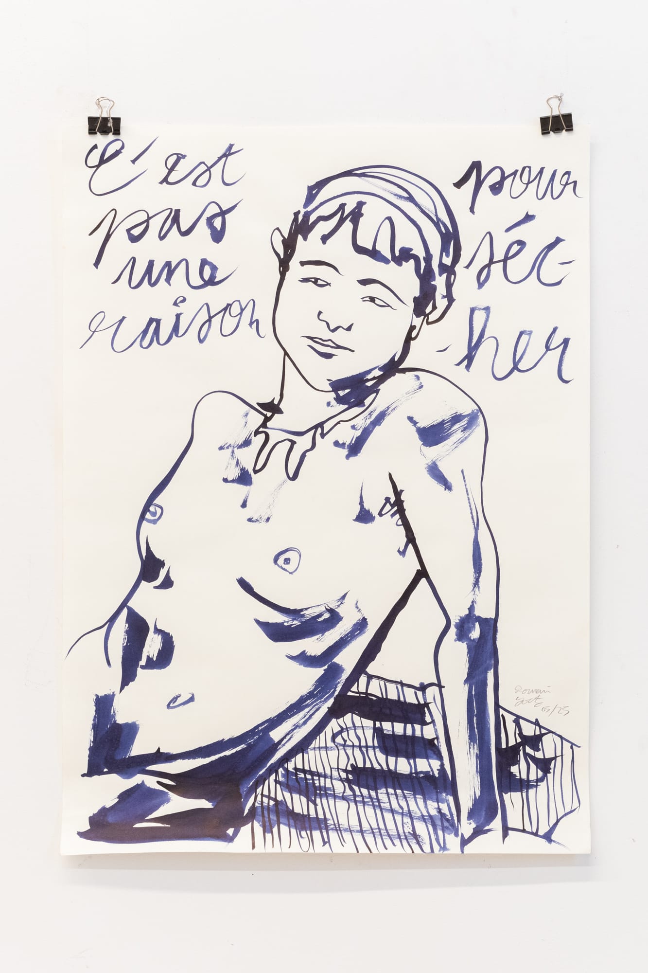 C'est pas une raison pour sécher, encre indigo papier, 42 x 58 cm, 2025