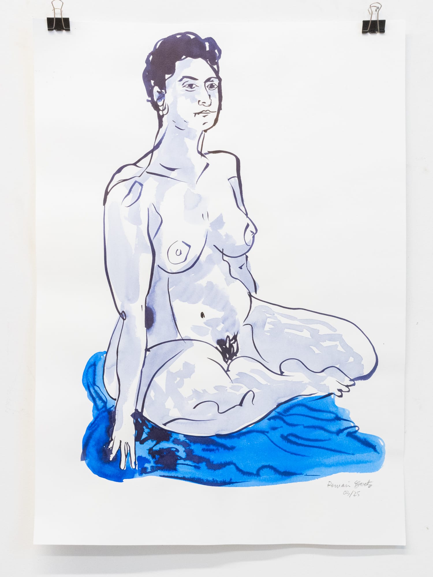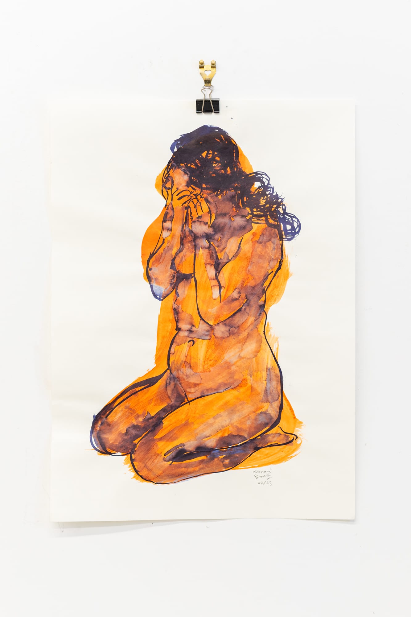 Femme assise II, encres acryliques sur papier, 42 x 59 cm, 2025