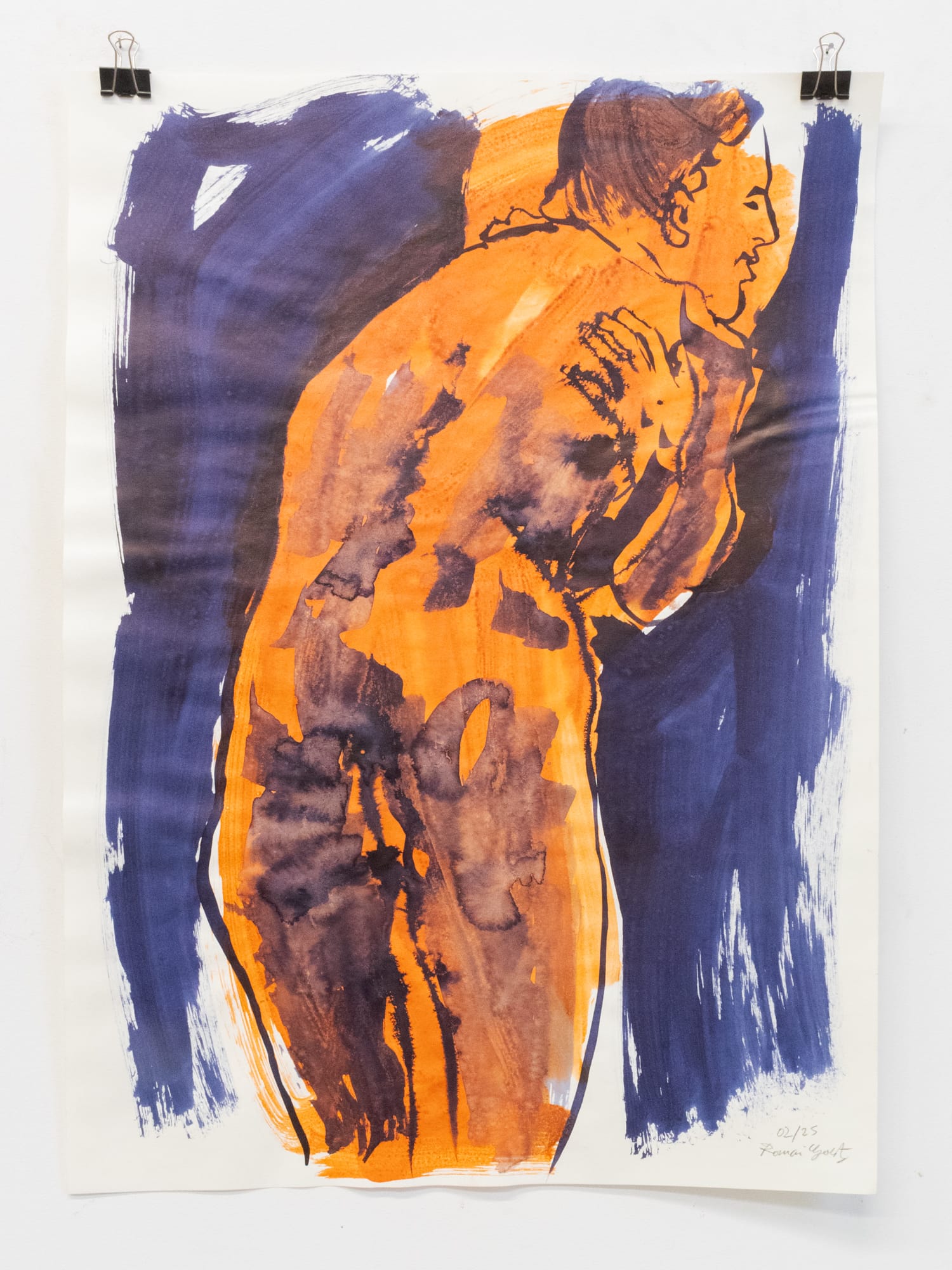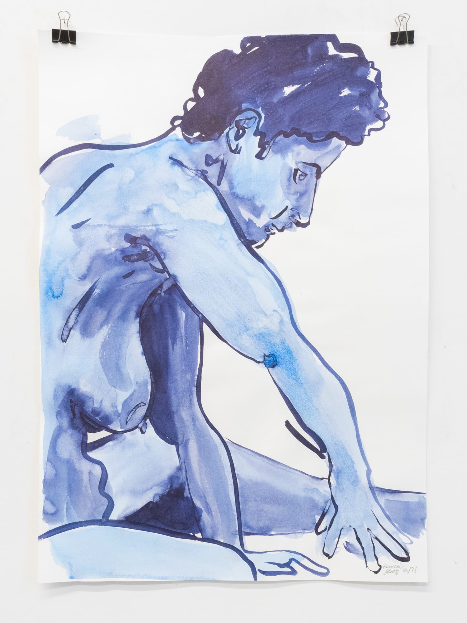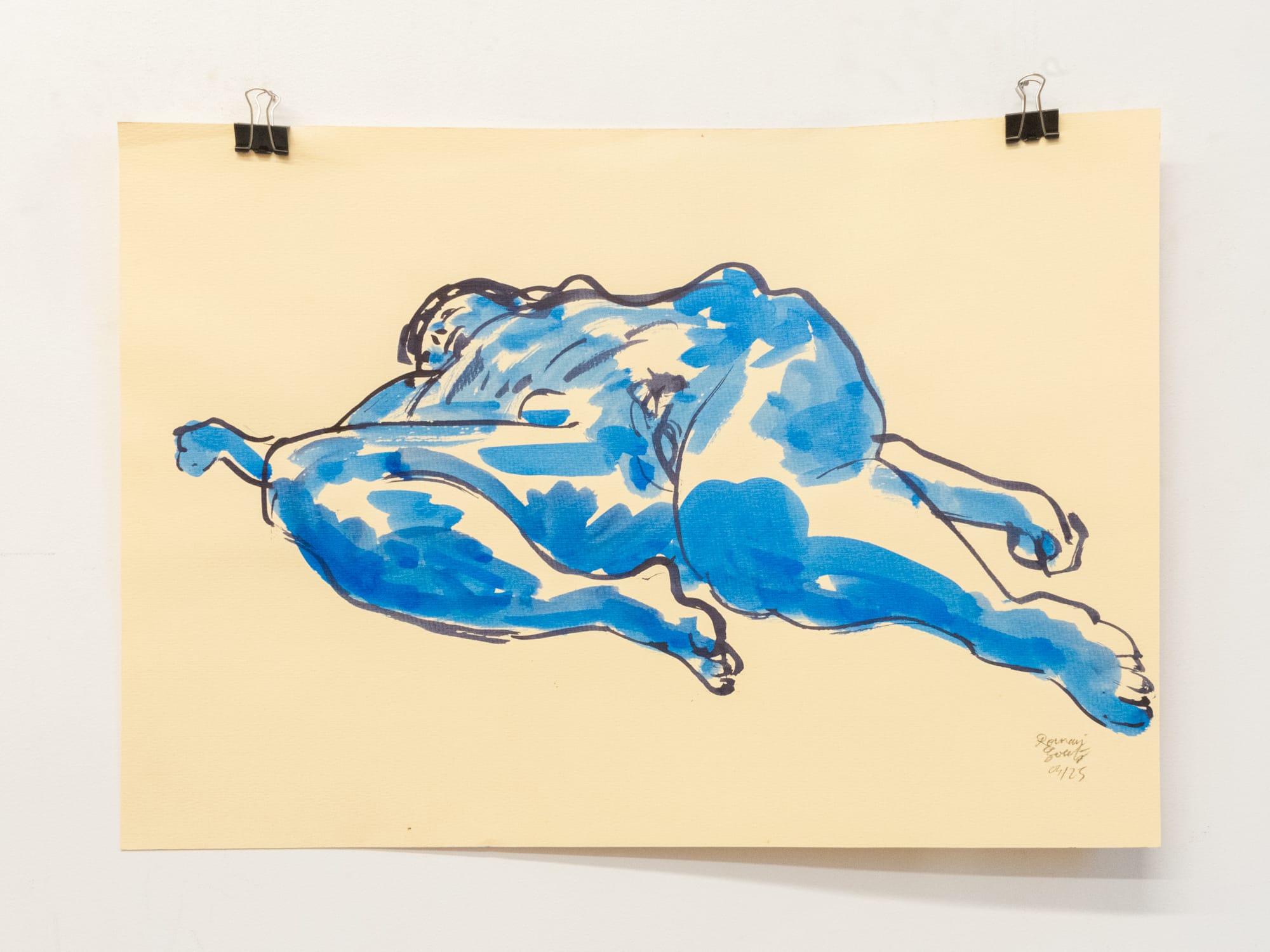 Jeff en bleu, encres acryliques sur papier, 41,8 x 59 cm, 2025