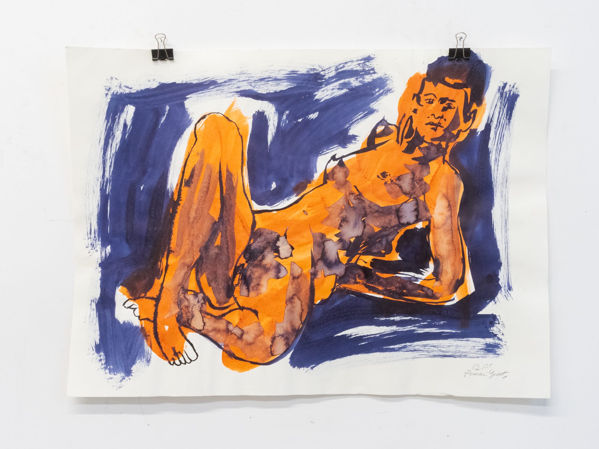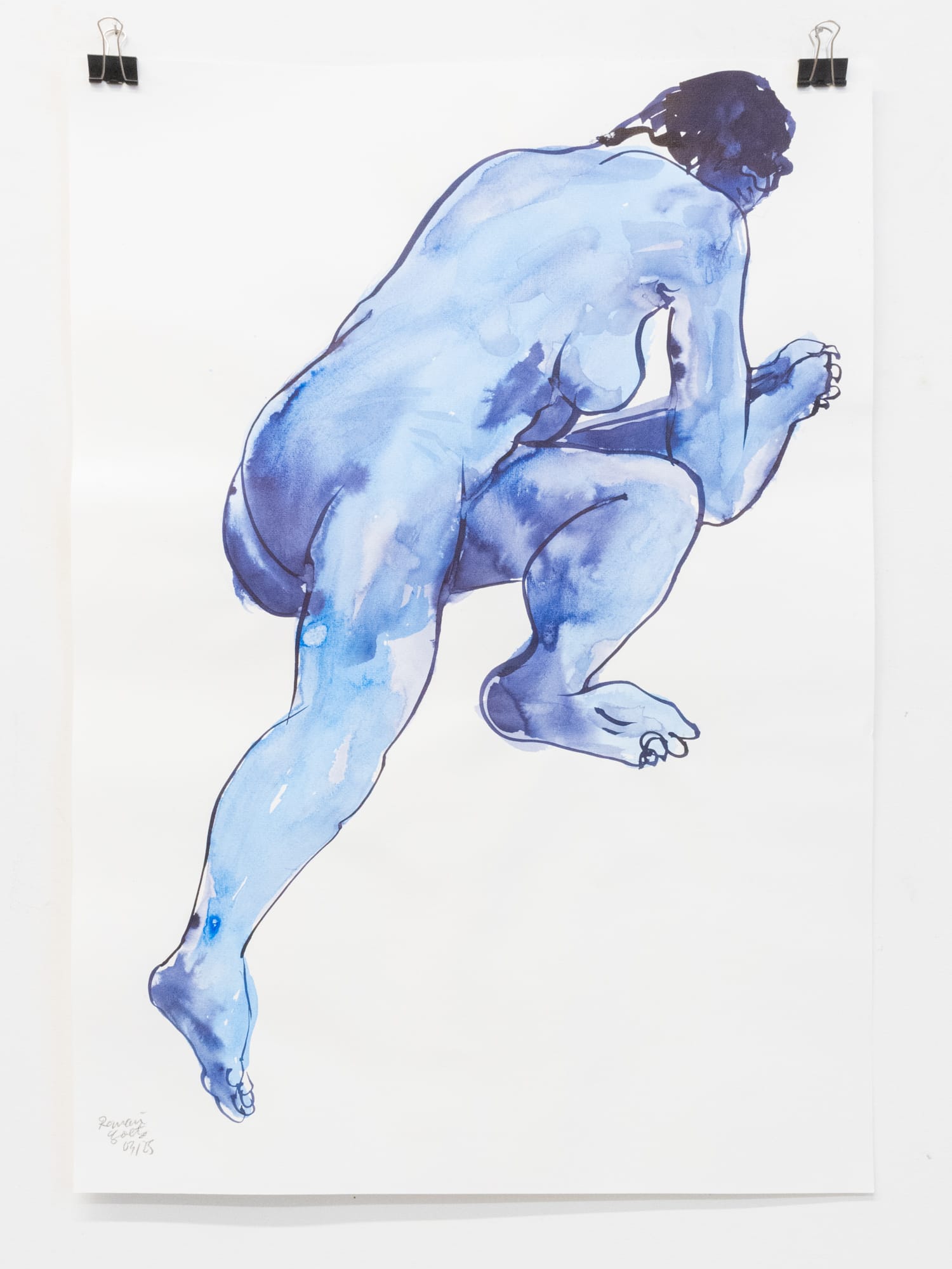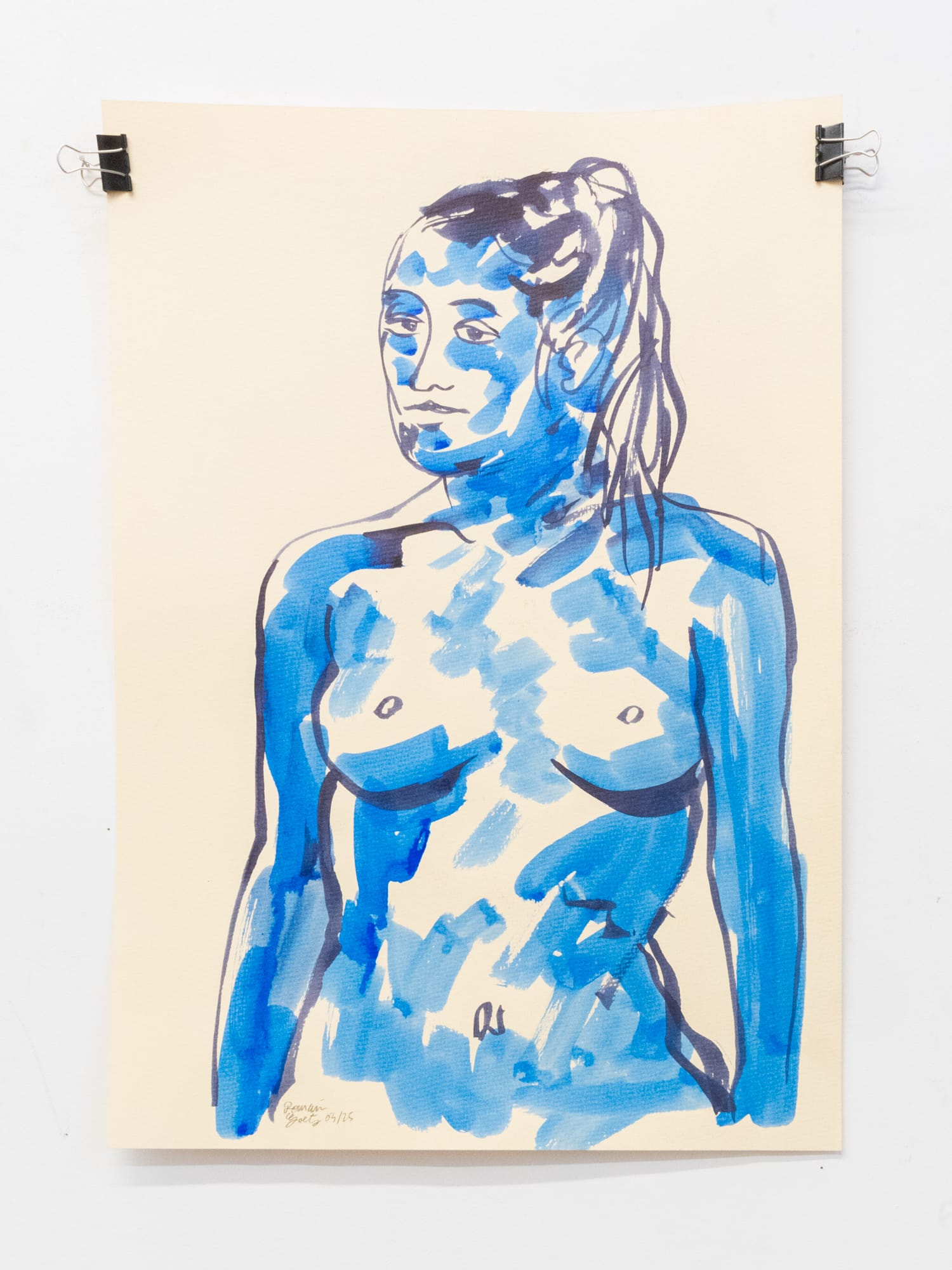 Jeff en bleu, encres acryliques sur papier, 41,8 x 59 cm, 2025