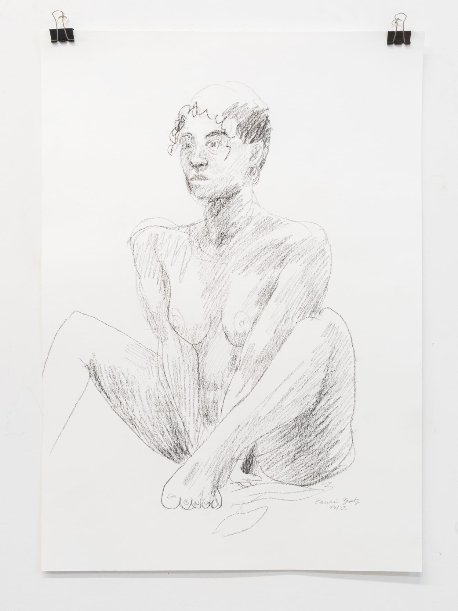 Femme assise, pierre noire sur papier, 42 x 59 cm, 2025
