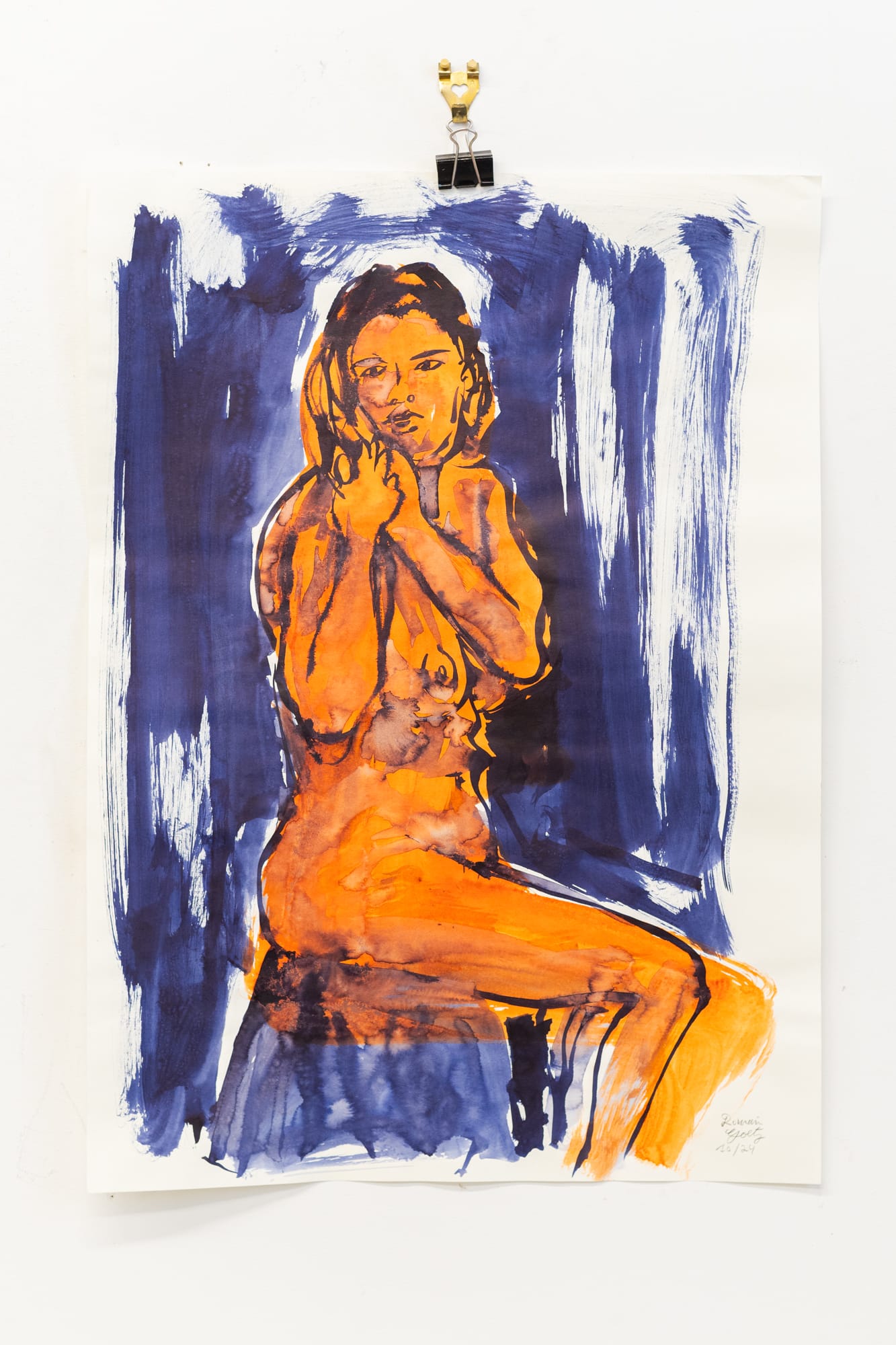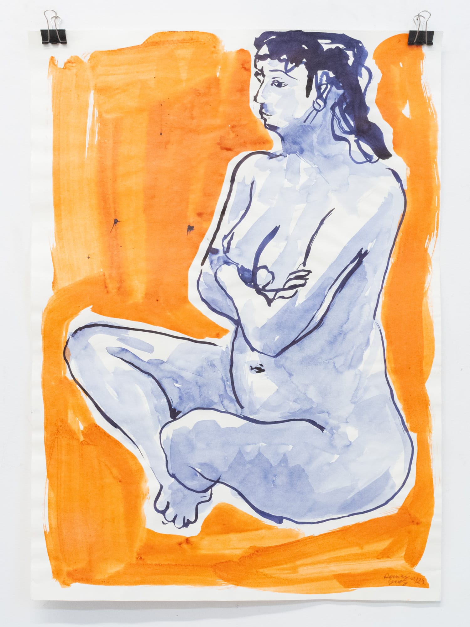 Femme assise, encres acryliques sur papier, 41,7 x 57,6 cm, 2025