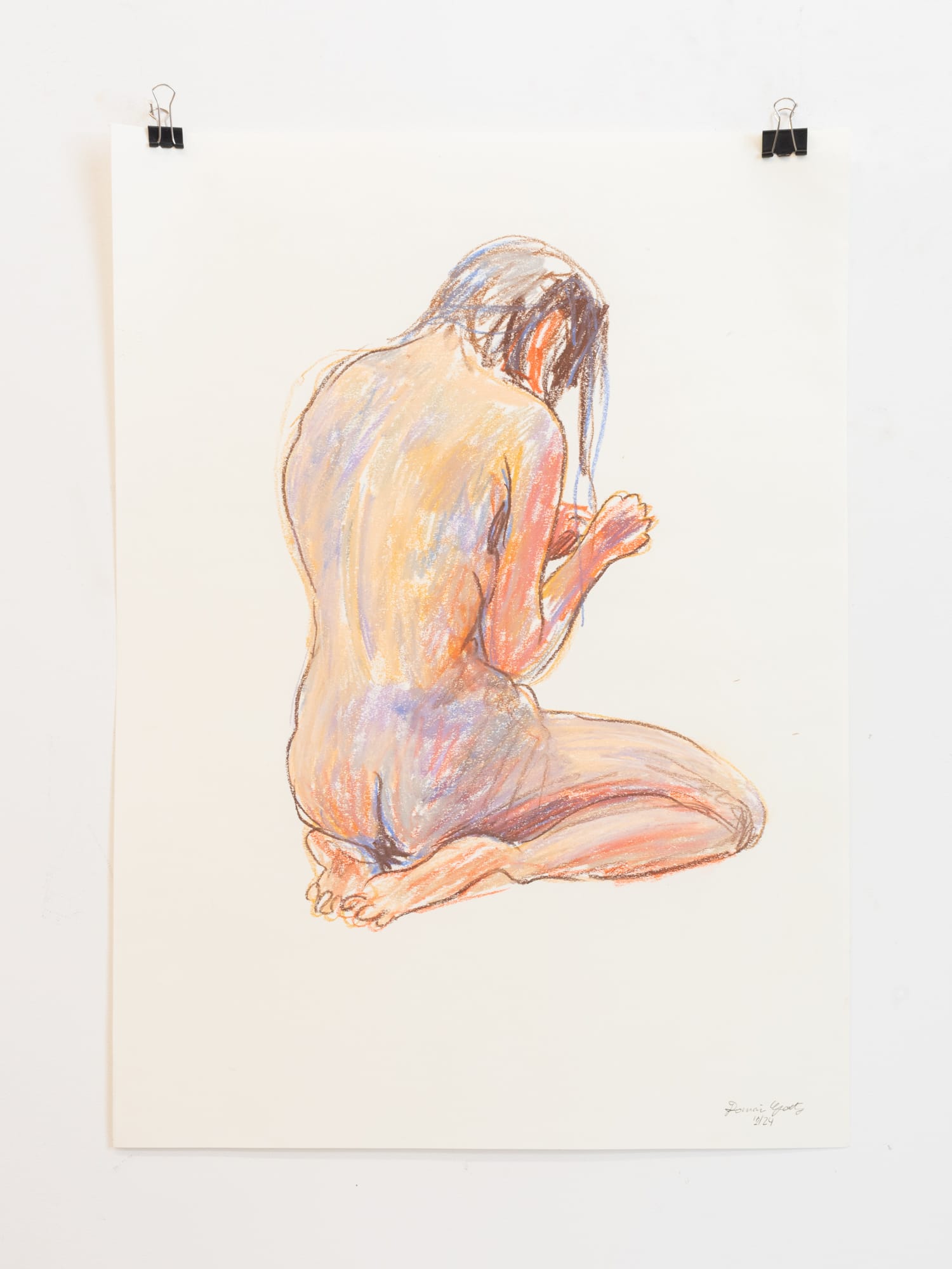 Femme de dos, pastels secs sur papier, 29,7 x 42 cm, 2025