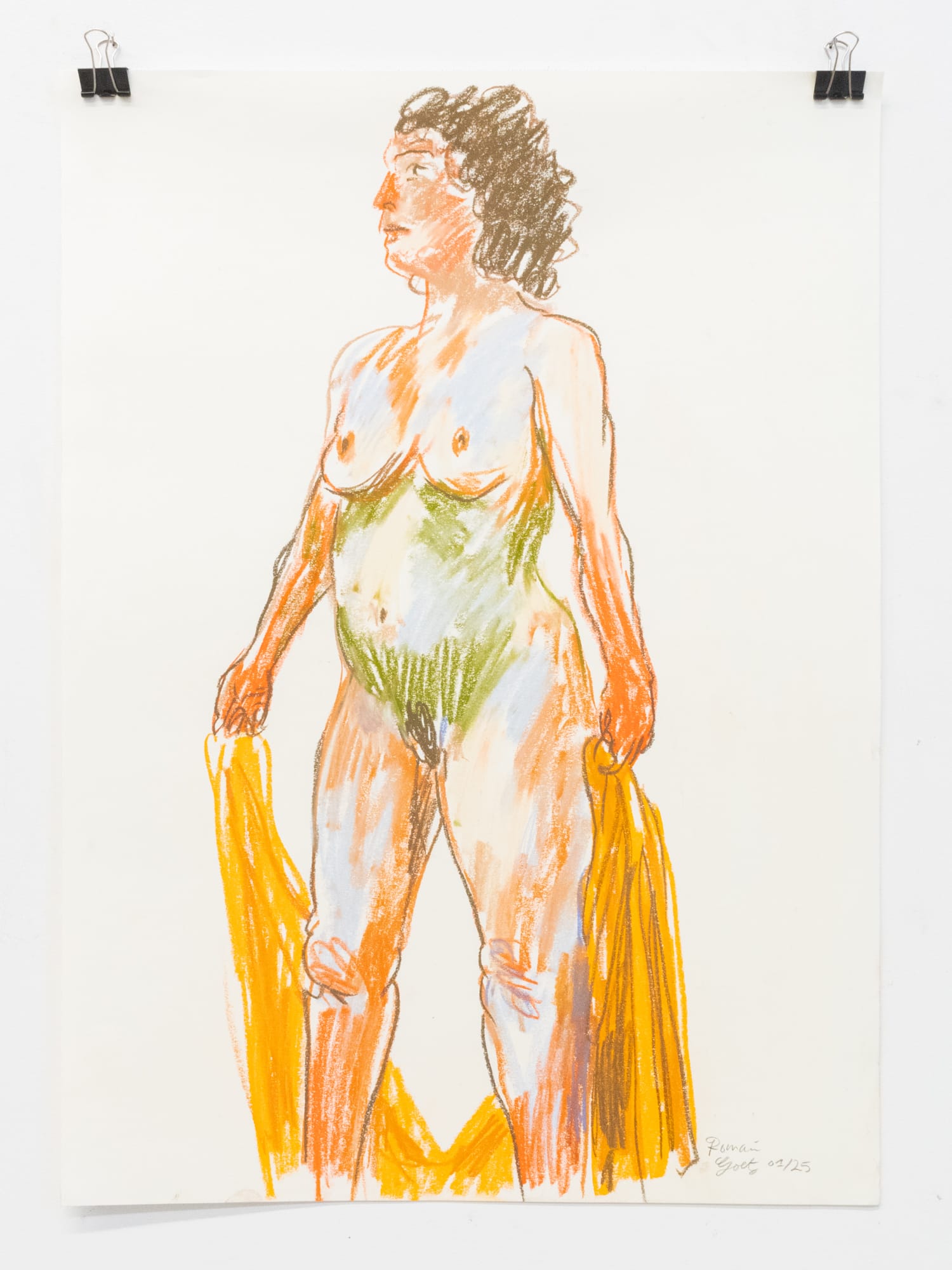 Femme au drap, pastels secs sur papier, 41,9 x 57,8 cm, 2025