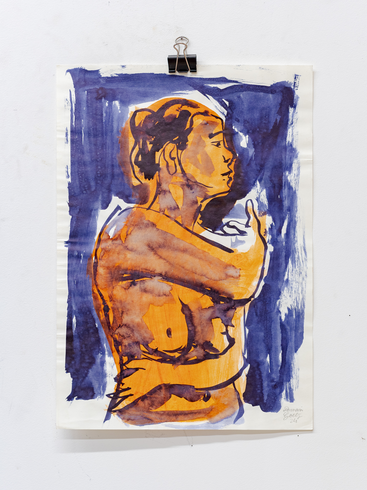 Femme debout, encres acryliques sur papier, 29,7 x 42 cm, 2024