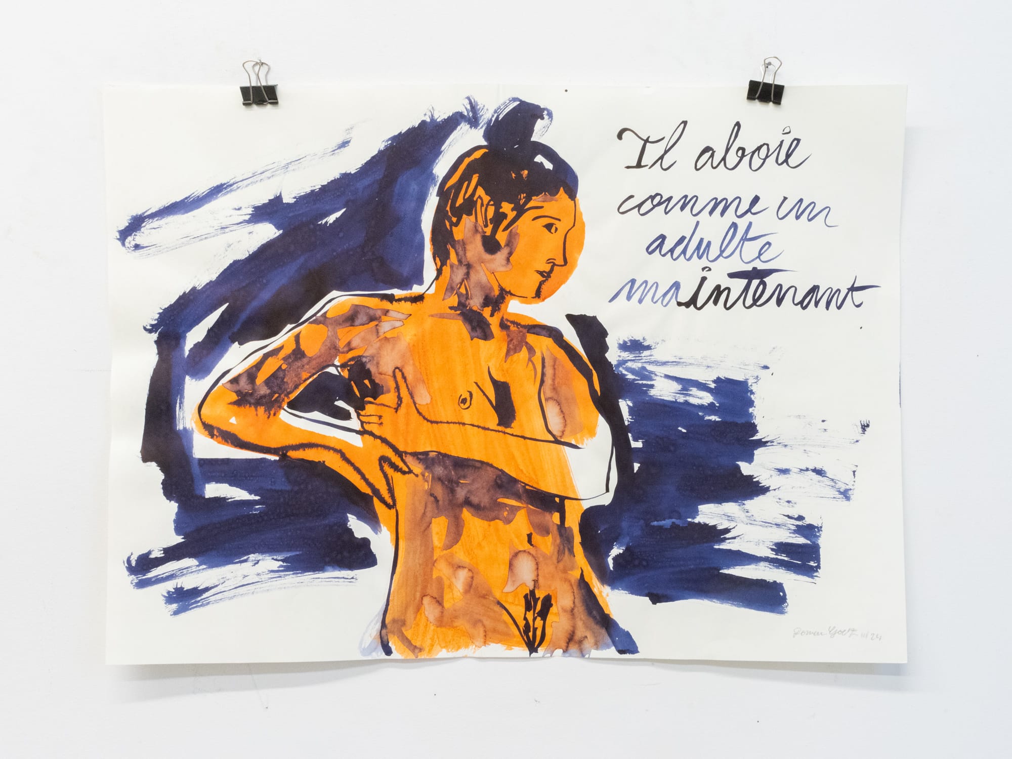 Il aboie comme un adulte maintenant, encres acryliques sur papier, 41,8 x 57,6 cm, 2024