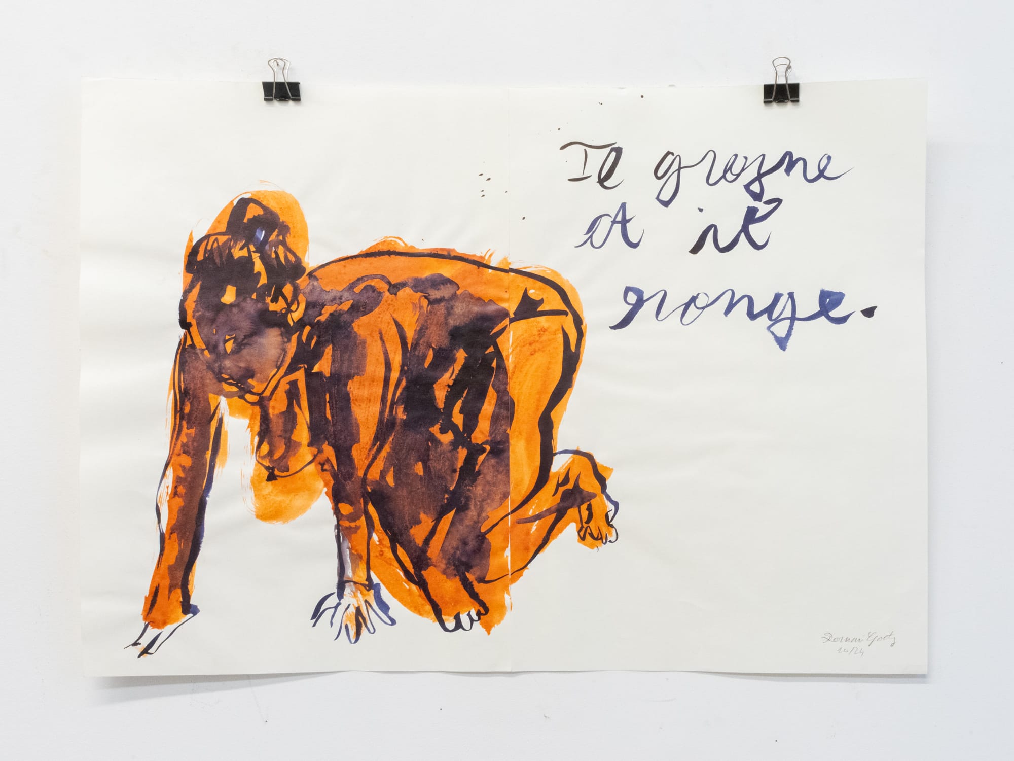 Il grogne et il ronge, encres acryliques sur papier, 41,8 x 59,2 cm, 2024