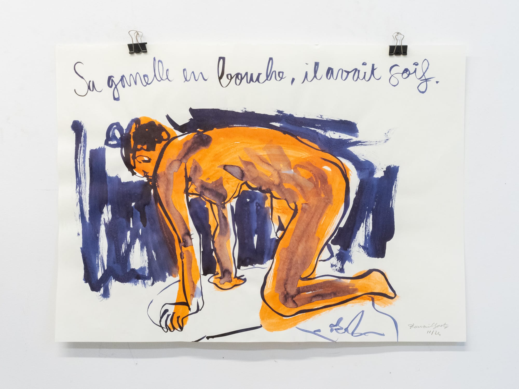 Sa gamelle en bouche, encres acryliques sur papier, 41,7 x 57,6 cm, 2024