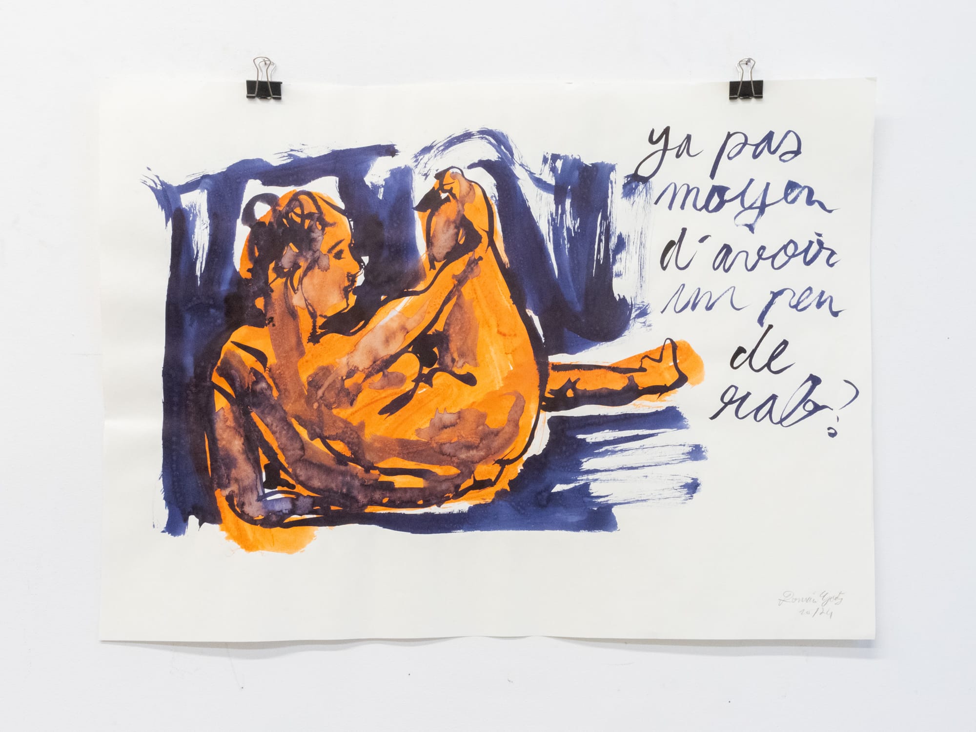 Ya pas moyen d'avoir un peu de rab ?, encres acryliques sur papier, 41,7 x 57,5 cm, 2024