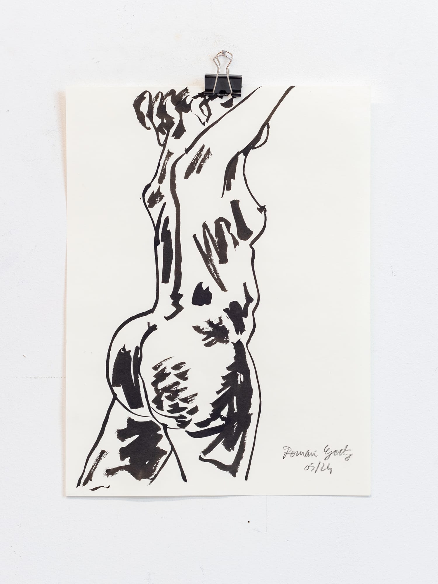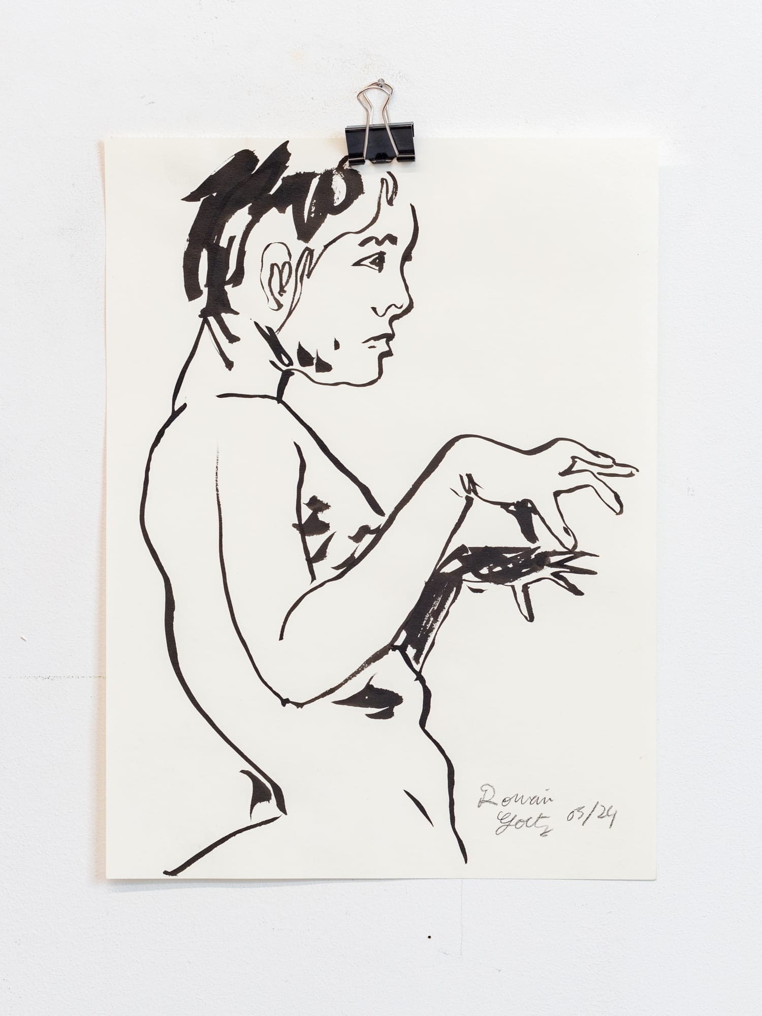 Modèle vivant, encre de Chine sur papier, 21 x 28 cm, 2024