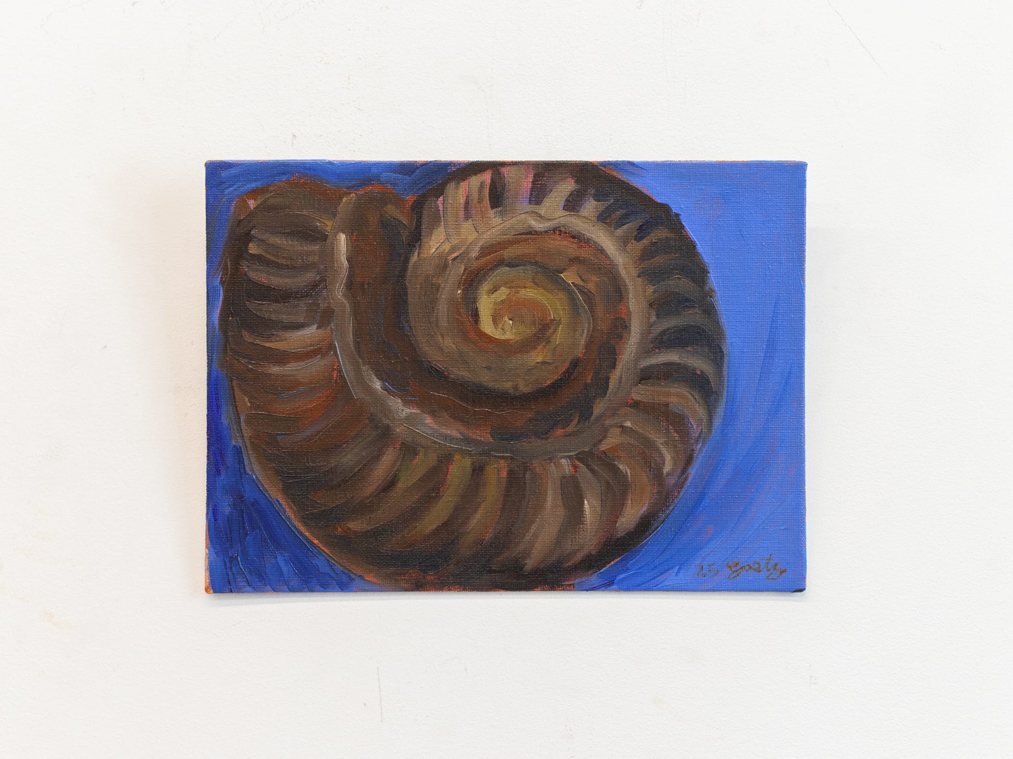 Ammonite, huile sur carton toilé, 16 x 22 cm, 2025