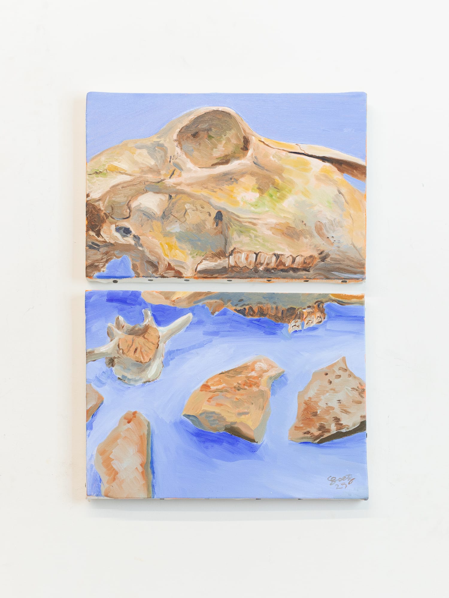 Le festin des vautours I, huile sur toile, deux toiles de 33 x 25 cm, 2025
